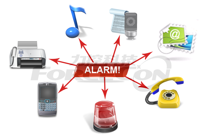 支持全方位的報(bào)警通知,包括聲音報(bào)警、語(yǔ)音報(bào)警、E-mail 或短信報(bào)警、逐行打印報(bào)警、Modem語(yǔ)音撥號(hào)報(bào)警等。