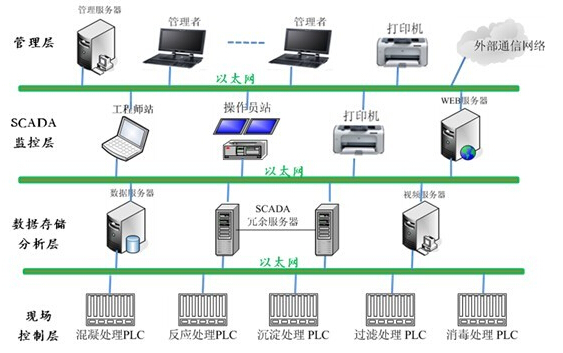 在凈水廠中采用自動化控制系統,實現凈水廠的生產控制、運行操作、監視管理,系統不僅有可靠的硬件設備,還有功能強大,運行可靠,界面友好的系統軟件、應用軟件、編程軟件和控制軟件。運行和維護費用低,操作方便。