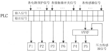 每面柜均設(shè)有一個手動/自動轉(zhuǎn)換開關(guān),該轉(zhuǎn)換開關(guān)為一個三位選擇開關(guān),安裝于二次控制回路中。1位為自動,2位為手動,0位為懸空。選1位時,自動指示繼電器吸合,PLC檢測該繼電器狀態(tài),執(zhí)行自動控制程序,由PLC控制所有水泵的起、停的切換、包括變頻器的起、停和報警。選2位時,自動指示繼電器分?jǐn)啵琍LC檢測該繼電器的狀態(tài),執(zhí)行手動程序,PLC只進(jìn)行檢測報警,此時所有柜面控制按鈕由人工通過柜面上的按鈕和開關(guān)進(jìn)行水泵的起、停和切換,包括變頻器的起、停。需要注意的是在手動狀態(tài)下PLC仍處于工作狀態(tài)。選擇0位時,此時手動控制電路被切斷,不能控制設(shè)備。自動指示繼電器分?jǐn)唷4藭rPLC檢測到的信號與選擇手動時一樣,因此PLC執(zhí)行手動程序,進(jìn)行故障報警。