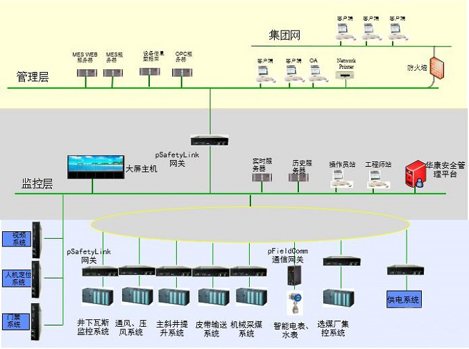 礦井綜合自動化系統是整個礦井安全生產監控系統信息的集成,它需要一個快速、安全、可靠的網絡平臺為大量的信息流動提供支撐,同時要有一個功能全面的安全生產信息應用系統為礦井安全生產提供科學調度、決策的依據。